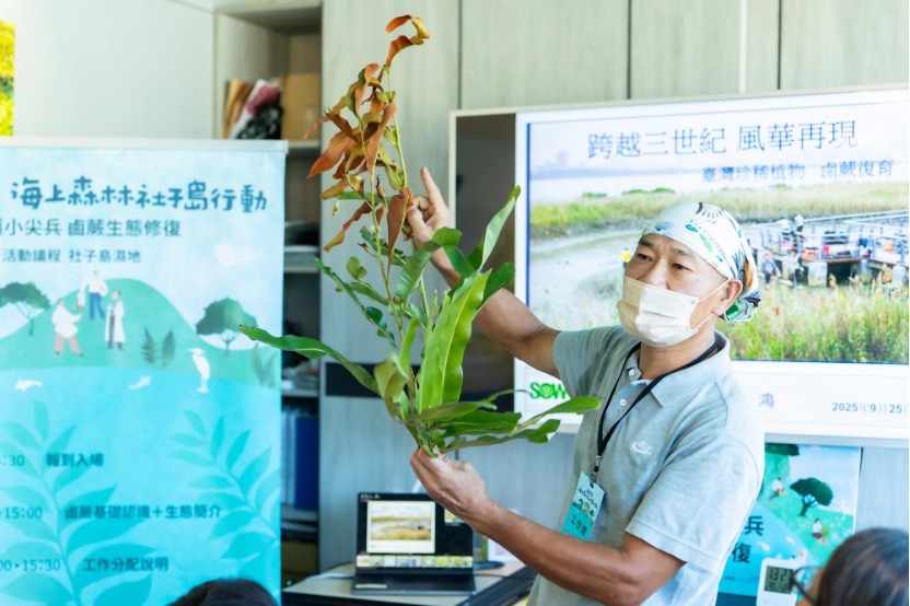2024年起,延續「為淡水河做一件事」的倡議行動,明緯攜手《天下雜誌》,推動「海上森林社子島五年行動計畫」,2025年10月18日號召員工、合作夥伴及供應商親自走進濕地,參與珍稀植物 鹵蕨 的復育。鹵蕨從僅存4株到繁衍超過200株,陳德鴻老師表示:「它們仍是弱勢居民!」。芒草、蘆葦與小花蔓澤蘭會爬附、遮光、搶養分,若不定期護理,鹵蕨就會被重新埋沒。在炙熱陽光下,數十名志工一同揮汗、彎腰,為稀有植物-鹵蕨 清理生長空間。這不僅是一場環境復育,更是一場品牌實踐:透過實際參與,讓永續成為品牌故事的核心敘事。